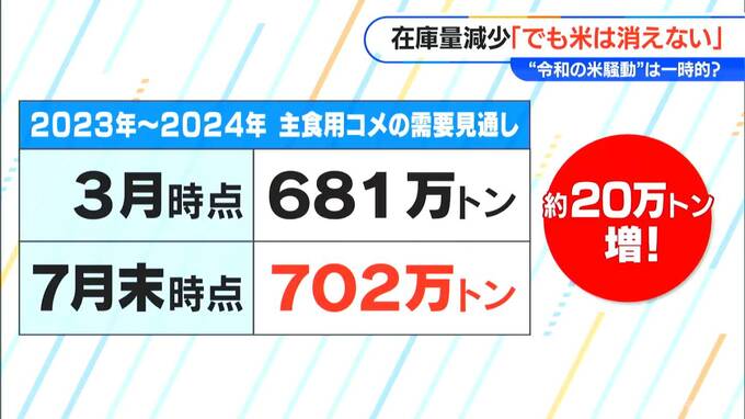 農林水産省が公表している米の需要量のデータです。ことし3月時点での見通しでは、去年9月の新米の出回る時期から、この8月までの間の需要量は全国で681万トン。