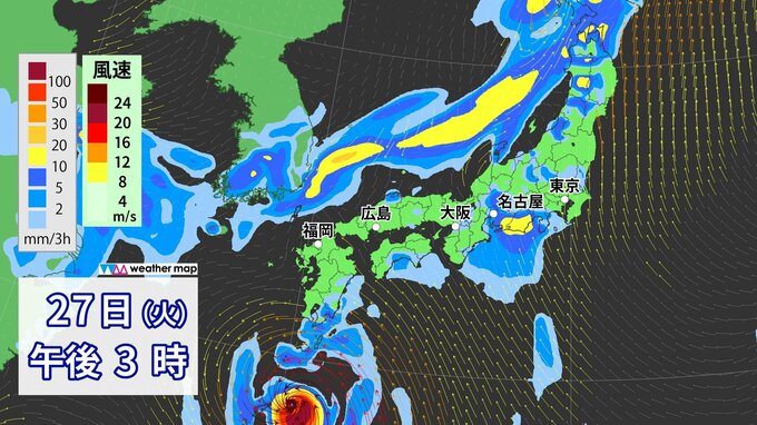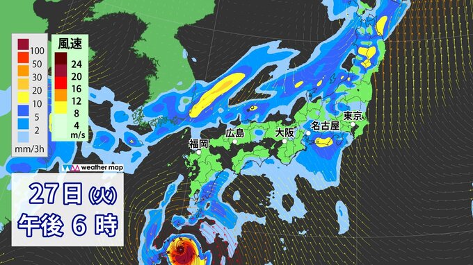 台風10号 サンサン 29日(木)頃に“九州・四国”直撃か 500ミリ予想の所も… 世界各国の予想進路は? この先の雨・風シミュレーション【台風情報】 2024年8月26日(月) 18:56 国内 天気 日本のスーパーコンピュータの予想では、台風が近づく前から湿った空気が入るため、太平洋側は局地的に大雨のおそれがあります。