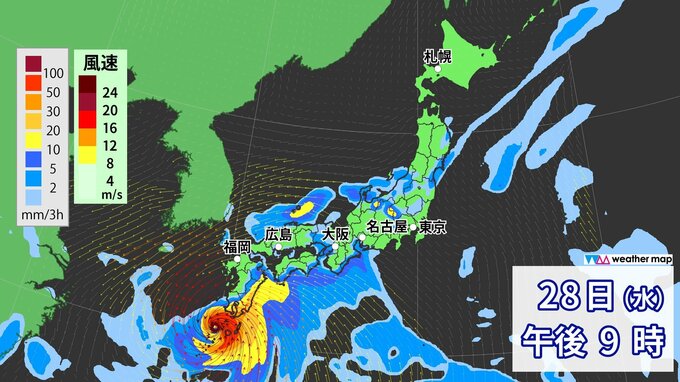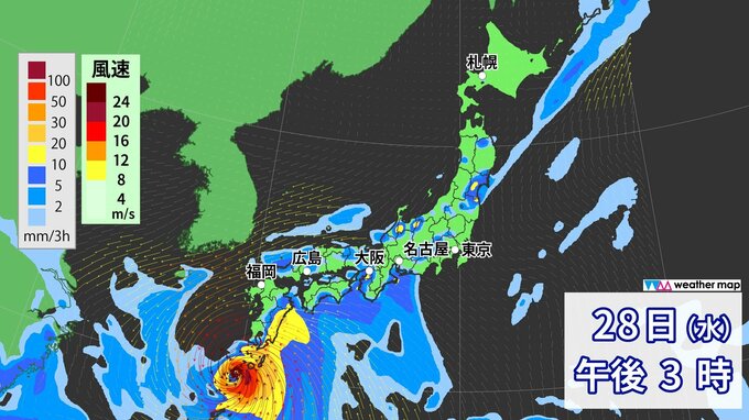 29日(木)からの雨・風シミュレーション