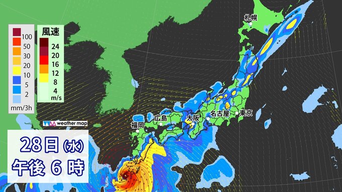29日(木)からの雨・風シミュレーション