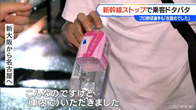 「4時半ぐらいに新大阪から乗ったが、途中米原辺りでずっと止まっていて、6時間くらい乗っていした。水を(車内で)いただいた」