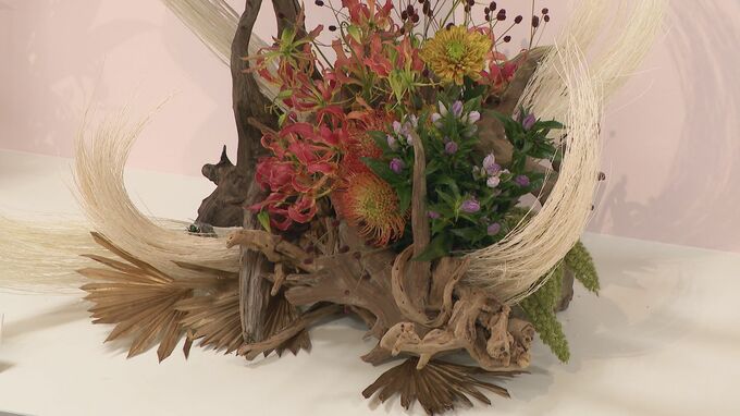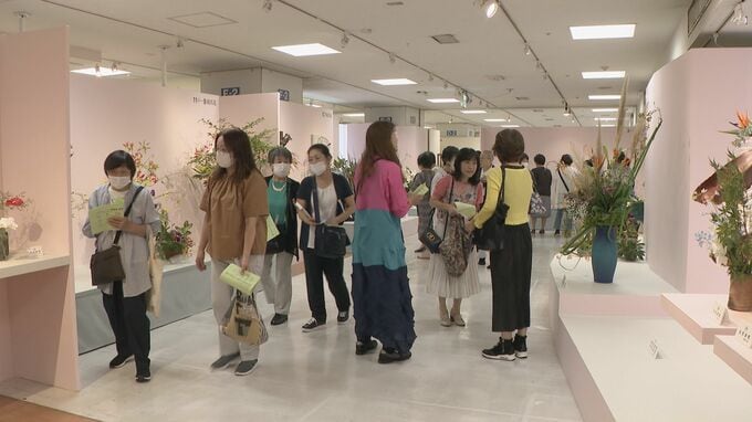 名鉄百貨店で4日に始まったのは、江戸時代から260年余りの長い伝統を持つ生け花の流派「松月堂古流」の作品展です。