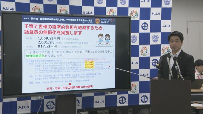 愛知県内では、ことし6月時点で、みよし市の他に津島市、飛島村、豊田市、安城市、豊根村の合わせて6つの自治体が、公立小中学校の給食費を無償化しています。