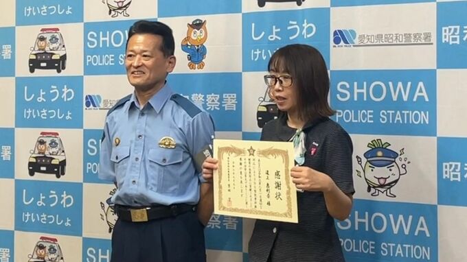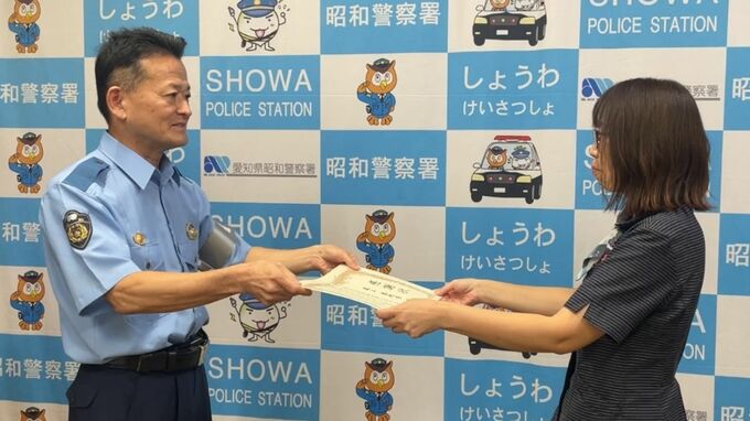9日、愛知県警・昭和警察署で感謝状が贈られたのは三十三銀行広路(ひろじ)支店の銀行員・道上恵利奈さんです。