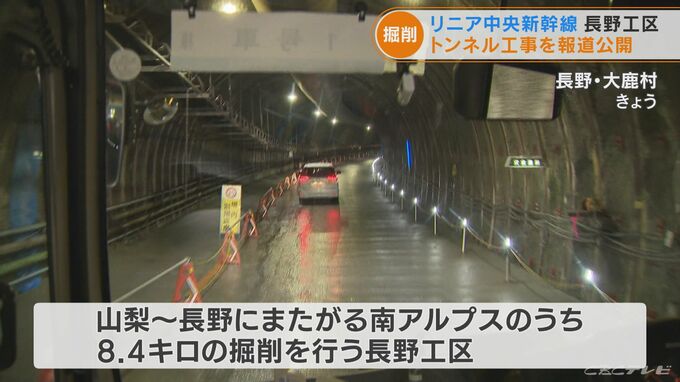 2日公開されたのは、山梨県から長野県にまたがる南アルプストンネル、全長およそ25キロのうち、8.4キロの掘削を行っている長野工区です。