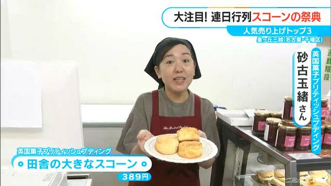 店主の砂古玉緒さんが大阪で開催している英国菓子教室は、常時100人以上が通うほどの人気。そんな本場のレシピで作られた人気のスコーンが。