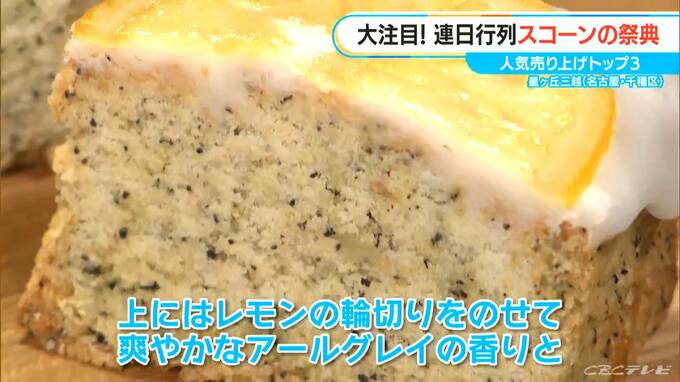 「アールグレイとレモンのスコーンは、パンのフェスでグランプリを受賞した賞品で、見た目でも楽しんでいただけるように、上にはレモンの輪切りをのせて、爽やかなアールグレイの香りと、甘酸っぱいレモンが楽しめる一品」