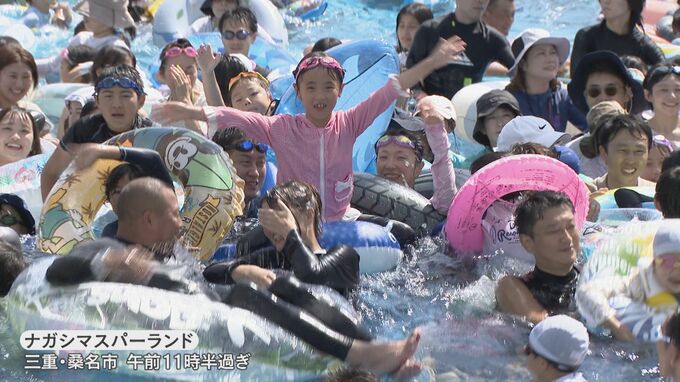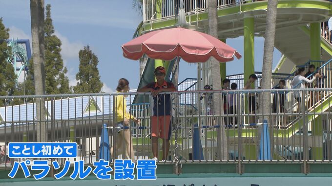 訪れる皆さんは、水分や塩分を補給するなど熱中症対策は必要となりますが、ナガシマスパーランドでは、ことしはじめて、監視するスタッフのために“パラソル”を設置する熱中症対策をとってきました。