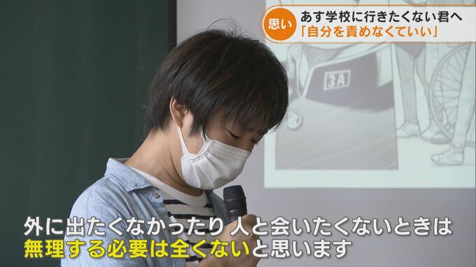 「(学校に)無理して行く必要はないし、行きたくなったら行けばいい。明日から頑張らなきゃいけないと思わなくても、頑張れるときから始めればいいと思います」