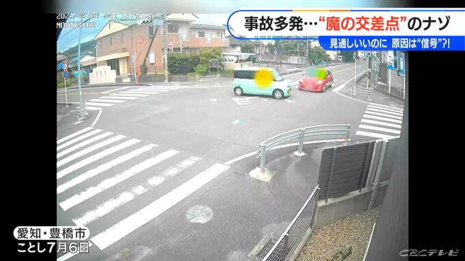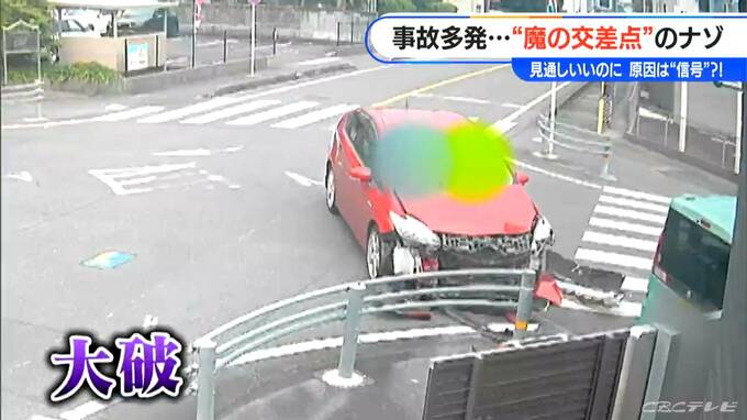 事故が多発する“魔の交差点”。現場には今も事故の爪痕が。