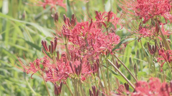 例年この時期に見頃を迎えるヒガンバナの開花が猛暑の影響で遅れています。