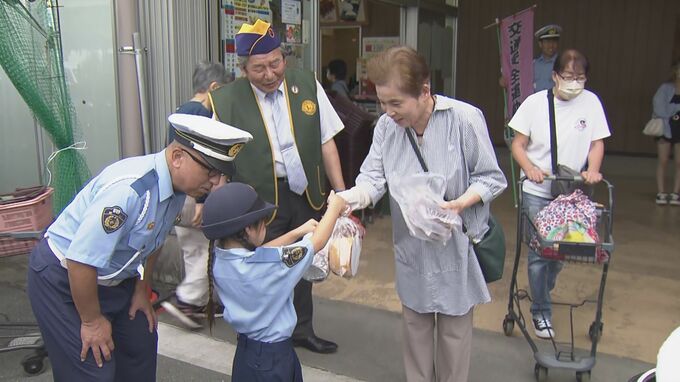 愛知県豊川市で「歩行者事故なし」を目指して、保育園児が果物の梨を配りました。