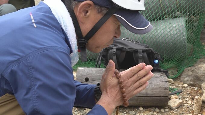 この日は遺族らで作る「やまびこの会」の慰霊登山で2人は噴火と同じ時刻の午前11時52分。山頂で他の遺族らとともに手を合わせました。
