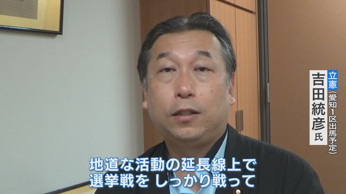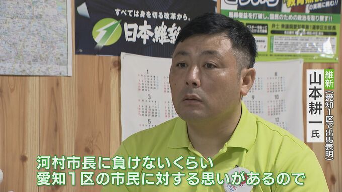 「(河村市長が)『出る』と聞いた瞬間、『僕は12日間 朝から晩まで全部自転車で活動しよう』と思った。河村市長に負けないくらい愛知1区の市民に対する思いがあるので、そのために仕事するには勝つしかないので全力でいくだけ」