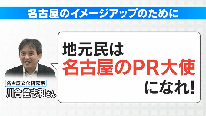 名古屋文化研究家の川合登志和さんは、「地元民は名古屋のPR大使になれ!」と話します。