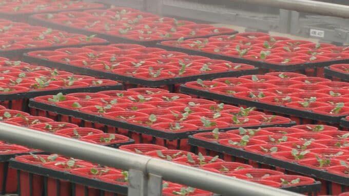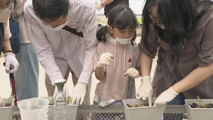 施設では、パンジーへの水やりなどを見学した後、自分で苗を植え付けたリーフレタスのポットを持ち帰りました。