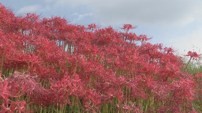 ヒガンバナようやく見ごろに 猛暑続きで例年より遅れて開花 新美南吉「ごんぎつね」の舞台で 2024年10月6日(日) 18:38 愛知 愛知県半田市では例年より1週間以上遅く、ヒガンバナが見ごろを迎えました。児童文学者、新美南吉の代表作「ごんぎつね」の舞台である矢勝川沿いには約300万本のヒガンバナが植えられています。ことしは9月に入っ…
