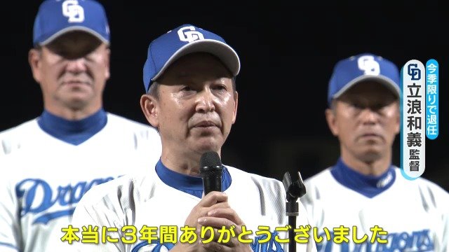 ファンへ最後のメッセージ「必ず強いドラゴンズになると信じています」 立浪和義監督 2024年10月7日(月) 17:59 国内 今季限りで退任を表明している立浪監督が、ファンへ最後のメッセージです。(立浪和義監督)「3年間これだけ声援をいただきながら、結果を出すことができず、本当に皆様に申し訳ない思いをさせてしまい、すみませ…