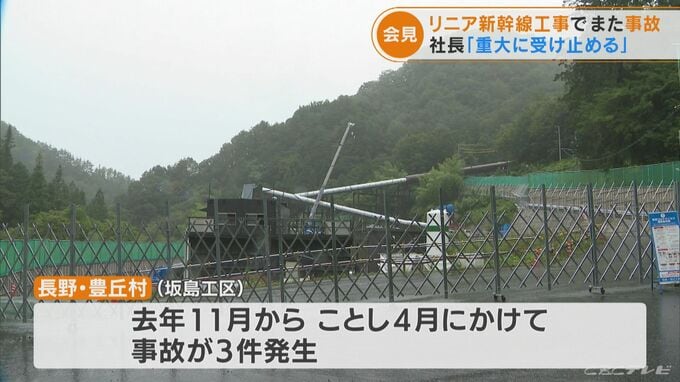 リニア中央新幹線のトンネル工事をめぐっては、村内の坂島工区(さかじまこうく)で去年11月からことし4月にかけて事故が3件起きていて、8日の会見でJR東海の金子社長は、長野での事故について「去年から事故の対策などのレベルを高めていこうと事業者と取り組んでいる。事故が起きないようにしていきたい」とコメントしました。