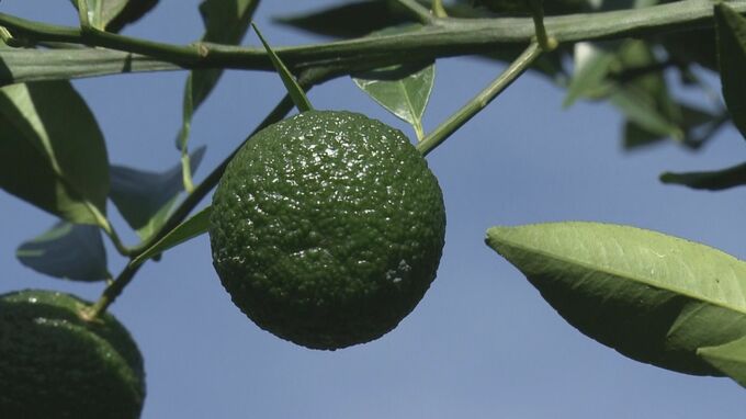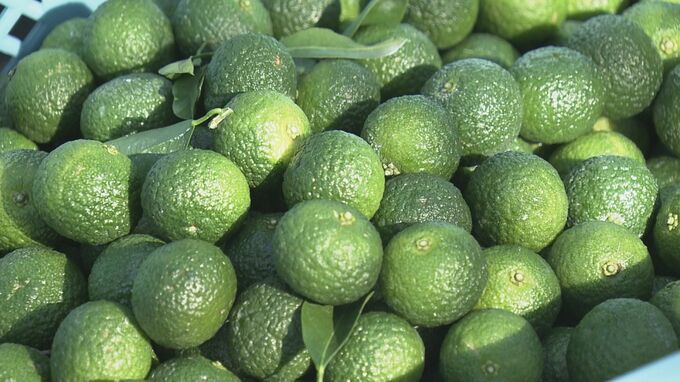強い酸味と爽やかな香りが特長で、焼き魚やドリンクなどによく合います。市内では22軒の農家が栽培していて今シーズンも収穫の時期を迎えました。
