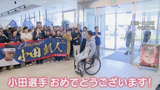 愛知県一宮市出身の車いすテニスプレーヤーの小田凱人選手が、所属する愛知県大口町の東海理化を訪問し、今シーズンの活動報告を行いました。