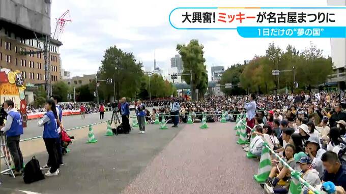 20日に行われた秋を彩る「名古屋まつり」。ことしはミッキーマウスやミニーマウスたち、ディズニーの人気キャラクターたちも特別参加ということで、正午過ぎの名古屋市役所前は多くの人たちで賑わっていました。