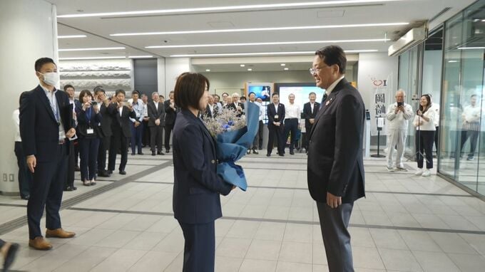 21日、多くの職員に出迎えられる中、登庁した岡崎市の内田康宏市長は職員から花束を受け取ると、「これから大変、これからが本番」と、気持ちを新たにしていました。