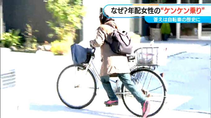 (高田アナ)「まずはこちらの女性ですが…さあ、ここから自転車に乗っていきます。どのように乗っていくか。左右をしっかりと確認しております。これは基本中の基本。あーっと!出ましたケンケン乗り!これぞケンケン乗りであります!」