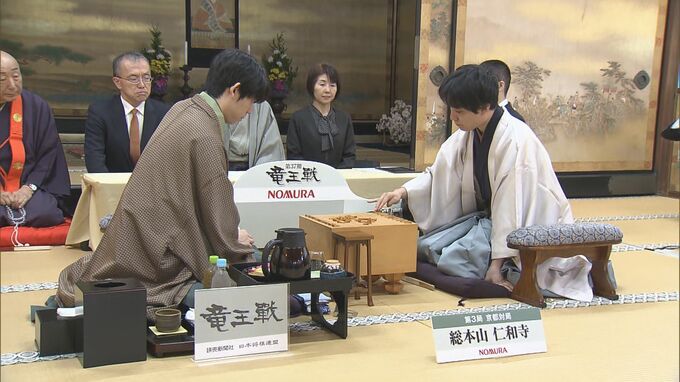藤井七冠が、タイトル戦初出場の佐々木勇気八段から挑戦を受ける竜王戦七番勝負。第3局は、京都市の世界遺産・仁和寺で25日午前9時、藤井七冠の先手で始まりました。