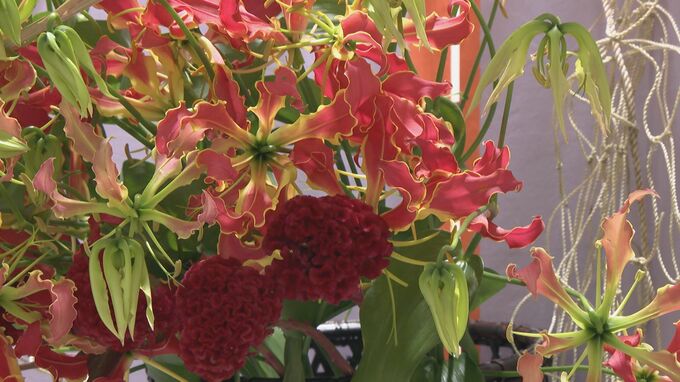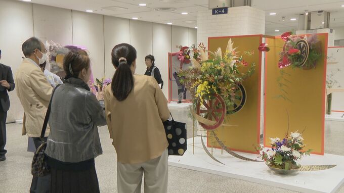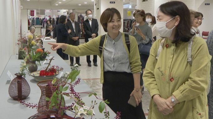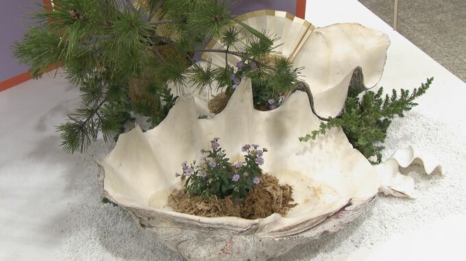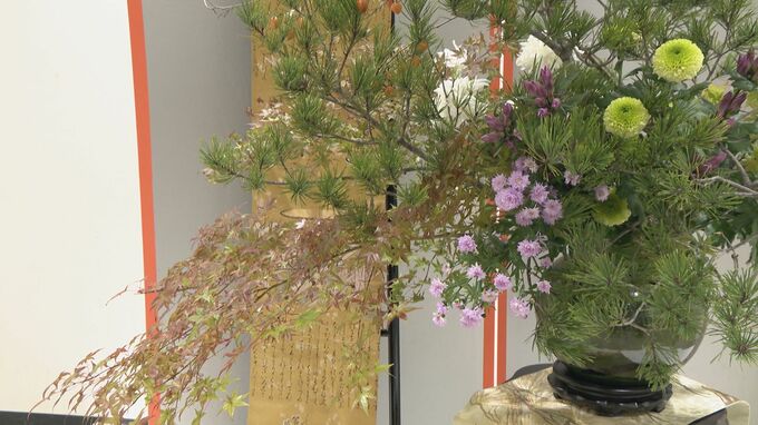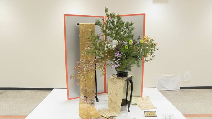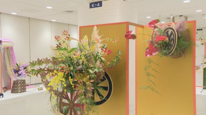 松坂屋名古屋店で始まった石田流芸術展「源氏物語花絵巻」。物語の名シーンを会期中およそ90点の生け花で表現します。