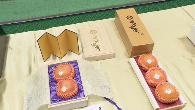 岐阜県産のブランド柿「天下富舞(てんかふぶ)」の初競りが行われ、2個100万円で落札されました。