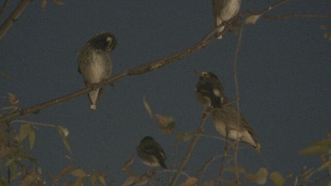夜でも人通りが多い都市部。フクロウやヘビなど、ムクドリが天敵から逃れる好条件がそろっています。