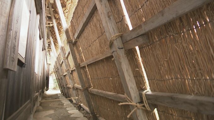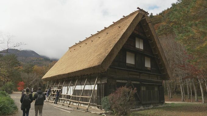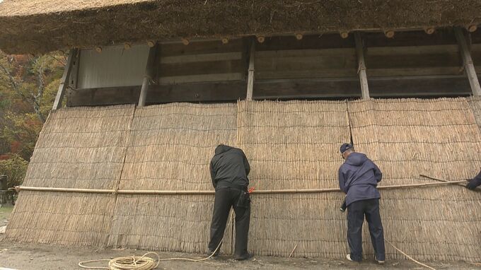 本格的な雪の季節を前に、岐阜県白川村で合掌造りの建物を雪から守る「雪囲い」が行われました。