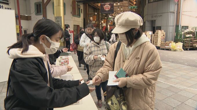 大須商店街では「原神」に登場するキャラクターの名前を冠した「パイモンのグルメツアー」というコラボイベントが開催されていて、イベント期間中の土曜日と日曜日は、大須商店街などで1000円以上購入したレシートを交換所へ持っていくと、人気のキャラクターが描かれたステッカーがもらえます。