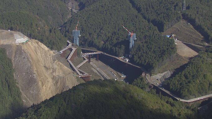 設楽ダムは、高さ約129メートル、総貯水容量が東京ドーム79個分にあたる9800万立方メートルのダムで、豊川の河口から約70キロ上流の場所に建設が進められています。