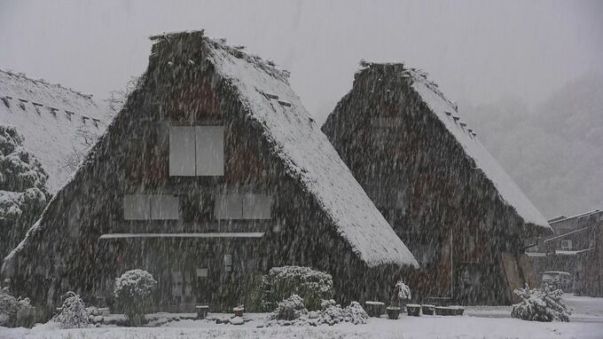 世界遺産 白川郷が雪化粧 合掌造りの家屋が白く染まる 東海地方で1センチ以上の積雪観測は今季初 2024年11月29日(金) 12:49 国内 29日朝は岐阜県山間部で雪が降り、白川郷では今シーズン初めての積雪となっています。世界遺産の白川郷では、合掌造りの家屋が真っ白に雪化粧しています。上空の寒気の影響で岐阜県白川村では朝から雪が積もり始め…