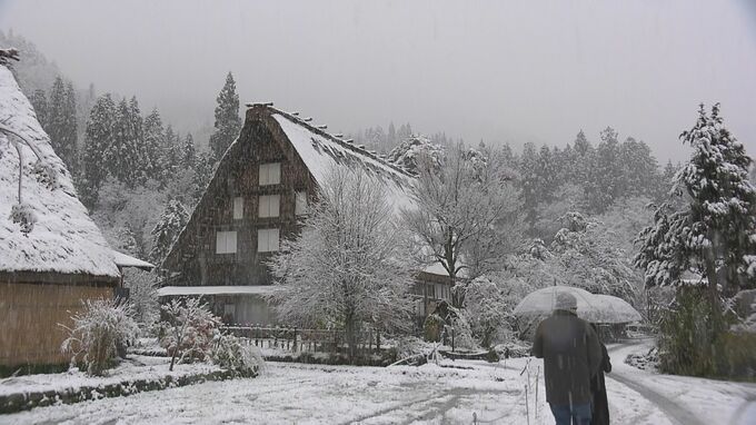 29日朝は岐阜県山間部で雪が降り、白川郷では今シーズン初めての積雪となっています。