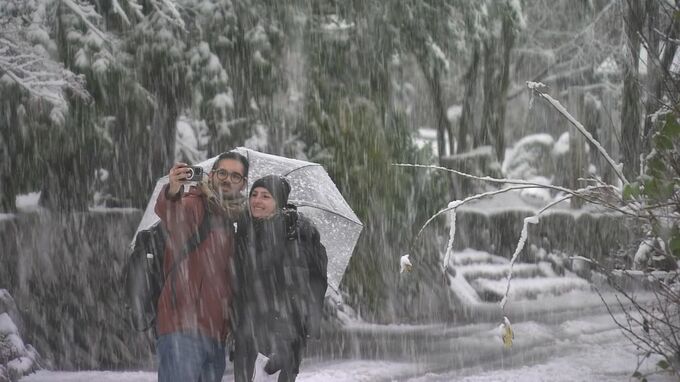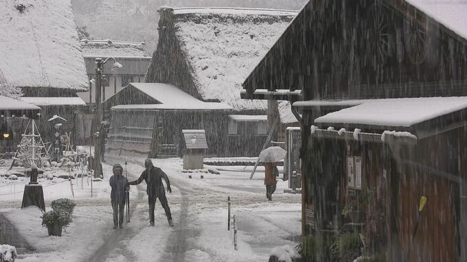 上空の寒気の影響で岐阜県白川村では朝から雪が積もり始め、午前11時までに積雪は最大3センチ、飛騨市河合でも5センチの雪が積もりました。