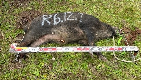 一夜明けた7日午前に、猟友会らが改めて公園内を捜索したところ、右の後ろ足に傷を負ったイノシシを見つけて捕獲し、殺処分しました。
