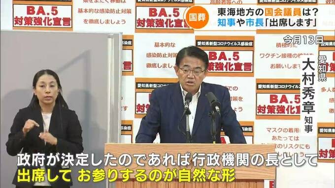9月27日に行われる安倍元総理の国葬。東海地方の国会議員はどう対応するのでしょうか。