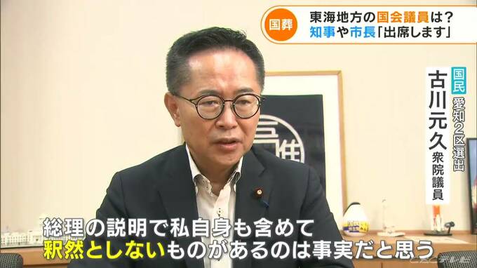 愛知2区選出の国民民主党・古川元久衆議院議員。国葬に出席する理由について…。