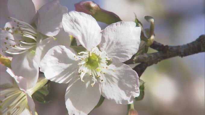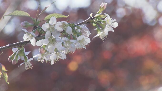 愛知県豊橋市で「冬に咲くサクラ」が見ごろを迎えています。