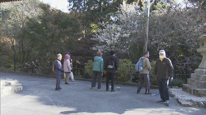 ネパールなどヒマラヤ地方が原産で、ことしは2週間ほど開花が遅れましたが、真っ赤なモミジと並び、訪れる人々の目を楽しませています。一部のモミジは葉が落ち始めていて、見ごろは15日頃までとのことです。