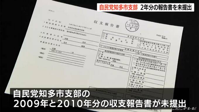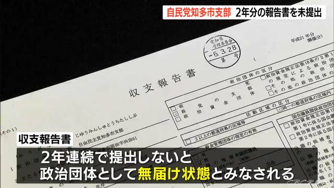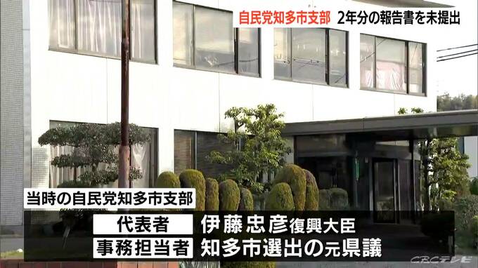 愛知県の自民党知多市支部が、過去2年分の政治資金収支報告書を10年以上提出していなかったことがわかりました。