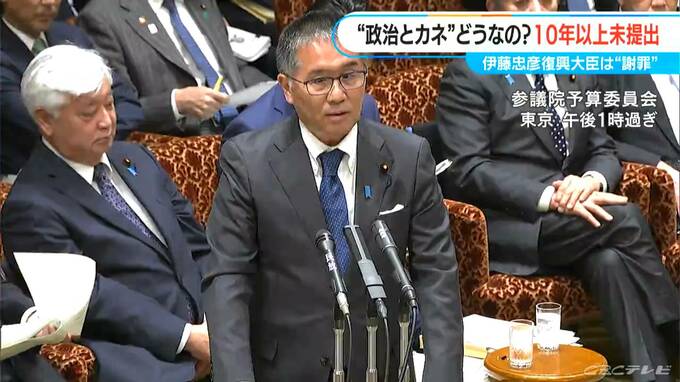 13日午後、参議院予算委員会で謝罪した伊藤忠彦復興大臣。以前代表を務めていた自民党知多市支部で、2009年と2010年分の収支報告書が県の選挙管理委員会に提出されていなかったことが判明したのです。