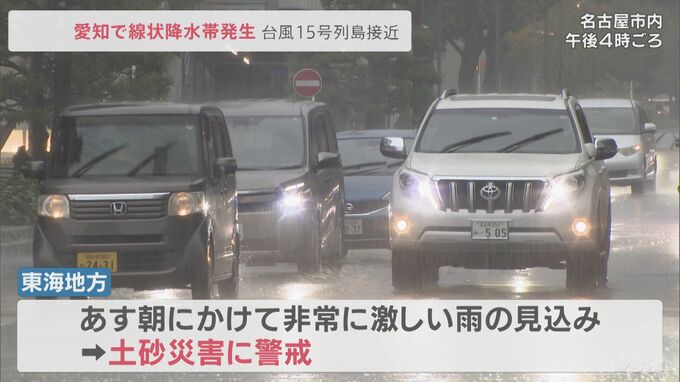 台風15号の接近で、東海地方では大雨が降り続いていて、気象庁は愛知県に線状降水帯発生情報を出しました。
