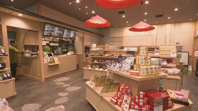 店内には、お茶やお菓子に加え、地元・常滑焼の「黄金急須」などが販売されるスペースのほか、「西尾の抹茶」を使った「白玉しるこ」などが味わえるテーブル席や靴を履いたまま利用できる茶室も用意されていて、この地方のお茶の魅力を発信します。