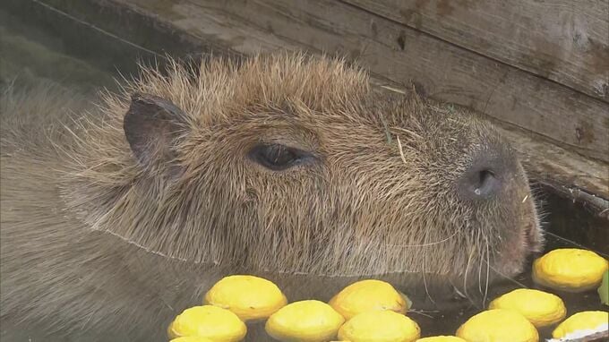 “いい湯加減”でうれしいね 寒さが苦手なカピバラたち 極上の“ゆず風呂”にご満悦! 2024年12月21日(土) 13:45 愛知 愛知県豊橋市の動物園では、カピバラがゆず湯を楽しんでいます。ゆずが浮かぶお風呂を楽しんでいるのはカピバラ。豊橋市にある「のんほいパーク」の冬の風物詩で、南米の暖かい地域に生息し、寒さが苦手なカピバラ…