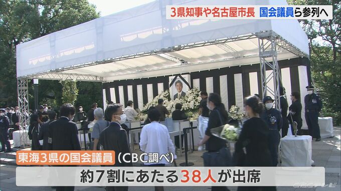 CBCテレビの調査では、東海3県選出の国会議員のおよそ7割にあたる38人が出席すると回答しています。参列する議員は…