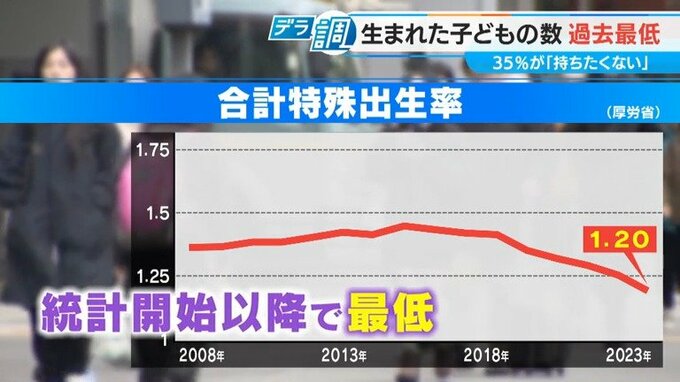1人の女性が産む子どもの数を表す合計特殊出生率も、2023年は統計開始以降で最低の1.20になりました。